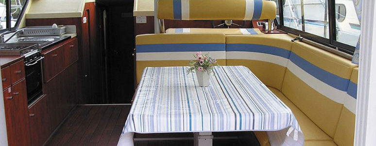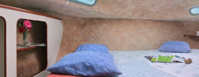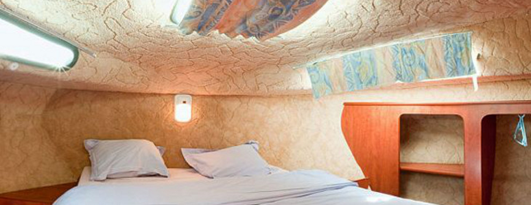 Kajuty mají pohodlná lůžka (140 x 190 cm), v kuchyňce lednici s mrazákem o objemu 220 L, vařič s 2/3-hořáky a troubu.
