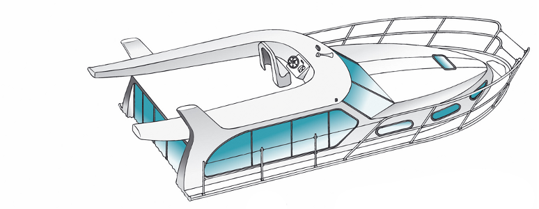 Hausbóty Nicols typ Sedan mají salon s panoramatickým výhledem. Posuvné dveře v zádi vedou na prostornou odstíněnou terasu.